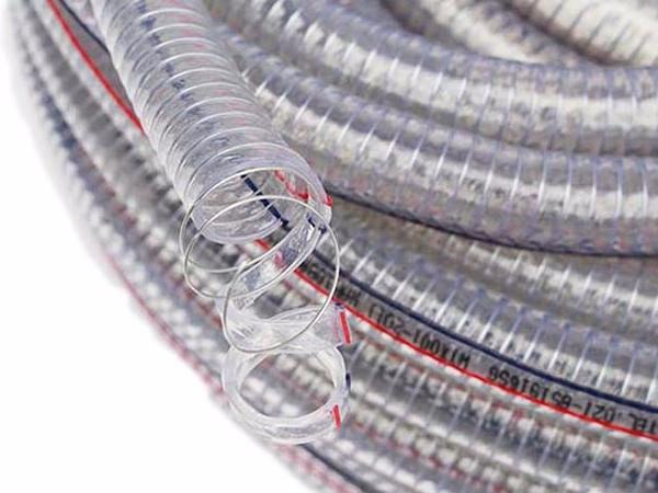 Spiral steel wire reinforced incorporated within the wall of flexible pvc tubing.